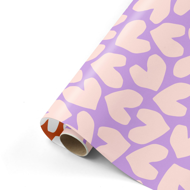 Deze set van 5 vellen cadeaupapier van ongeveer 1 meter, bestaat uit 5 dessins met verschillende binnenkant, in een lial/roze/oranje kleurstelling. Zo heb je 10 verschillende dessins.