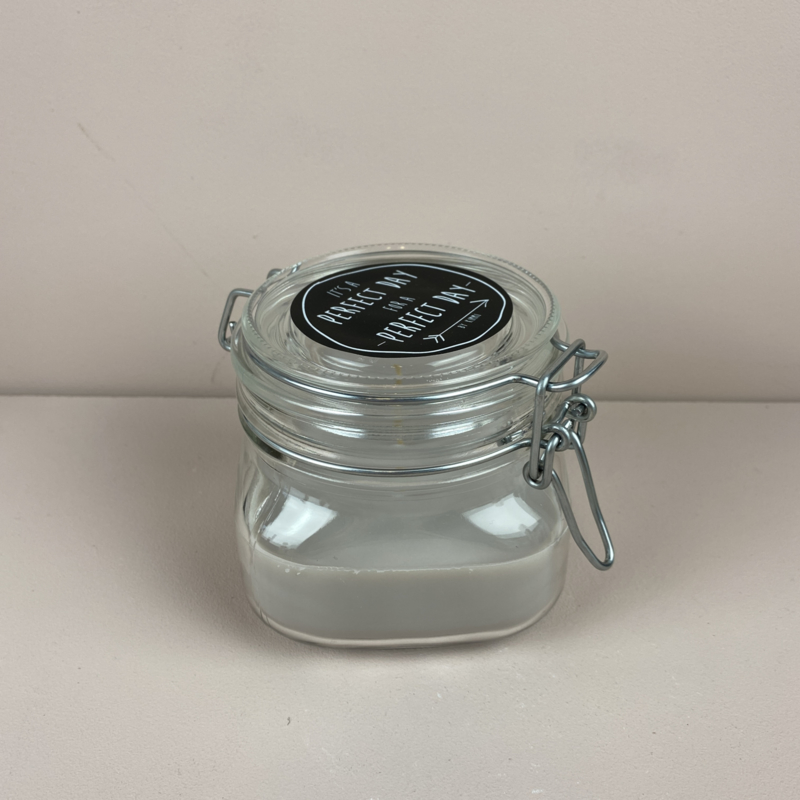 Mooie weckpot met een linnen kleur (warm grijs) kaars, leuk kadootje voor jezelf of voor....