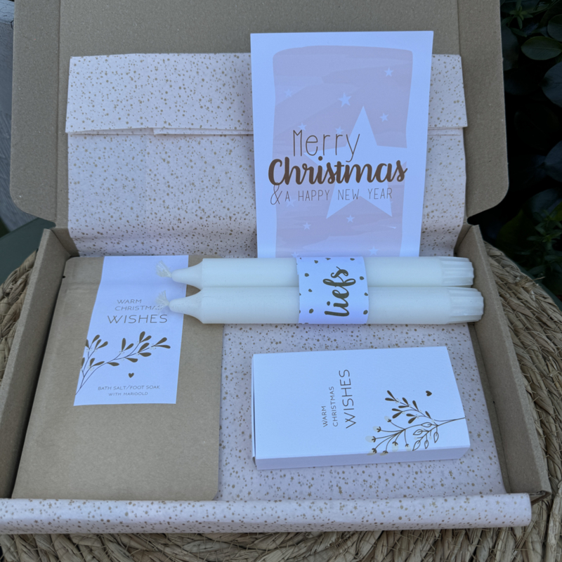- 1 zakje (voeten)bad zout met rozenblaadjes 'warm christmas wishes'