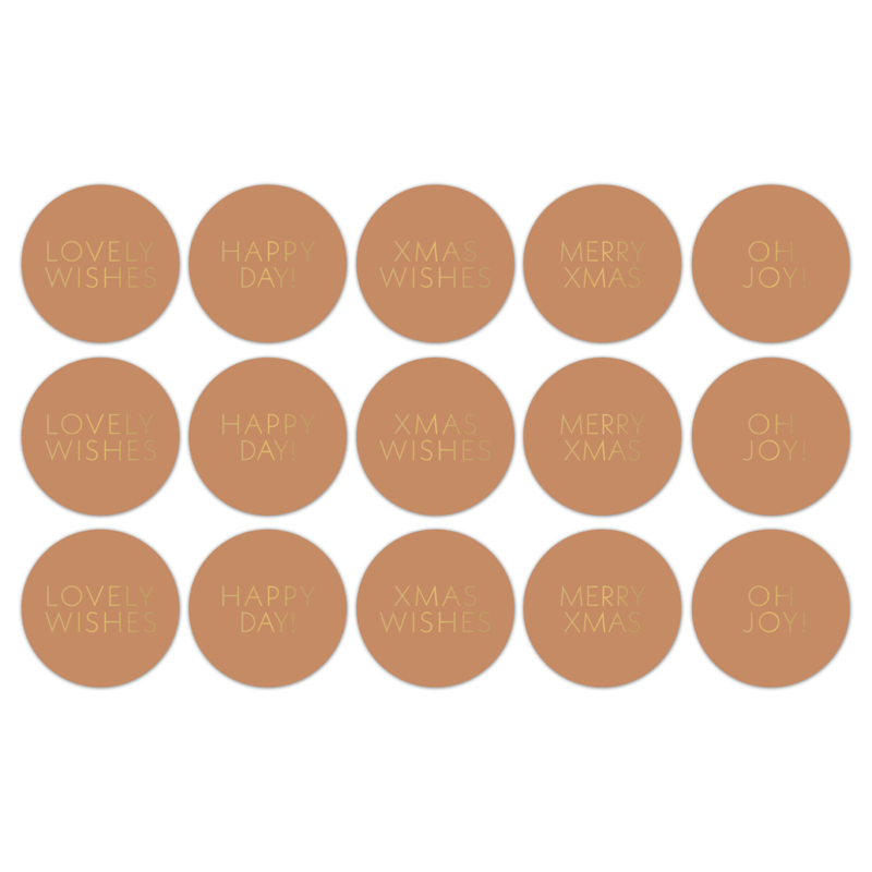 5 kadostickers Xmas wishes fudge/goudDeze prachtige ronde kadostickers in de kleur fudge/goud zijn te gek als kadosticker en als sluitsticker op je kerst kadootjes.