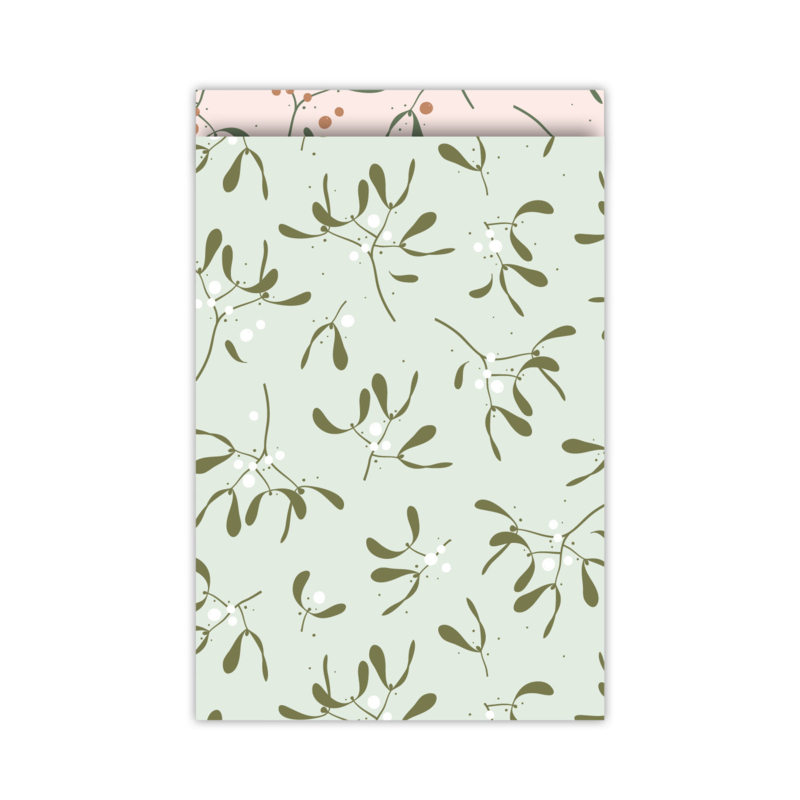 2 kadozakjes salie 17 x 25 cm (A5) inclusief stickersOnder de mistletoe maak je de mooiste herinneringen. Bovendien is de mistletoe een mooi symbool voor liefde, vrede en vruchtbaarheid. Volgens de legende biedt het bescherming tegen boze geesten en brengt het geluk. Precies wat…