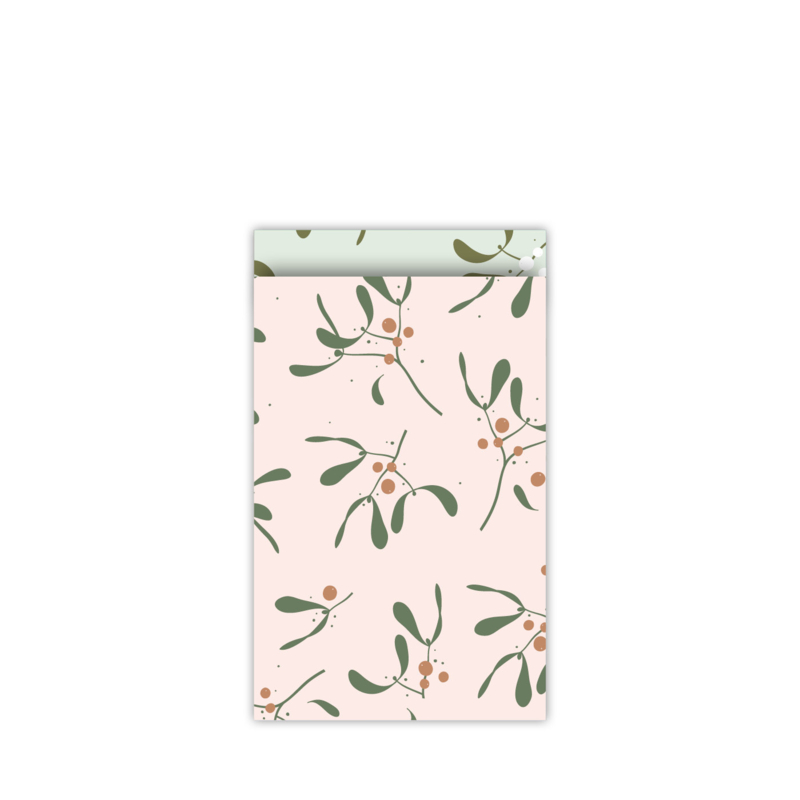 2 kadozakjes zacht roze 12 x 19 cm (A6) inclusief stickersOnder de mistletoe maak je de mooiste herinneringen. Bovendien is de mistletoe een mooi symbool voor liefde, vrede en vruchtbaarheid. Volgens de legende biedt het bescherming tegen boze geesten en brengt het geluk. Precies wat…