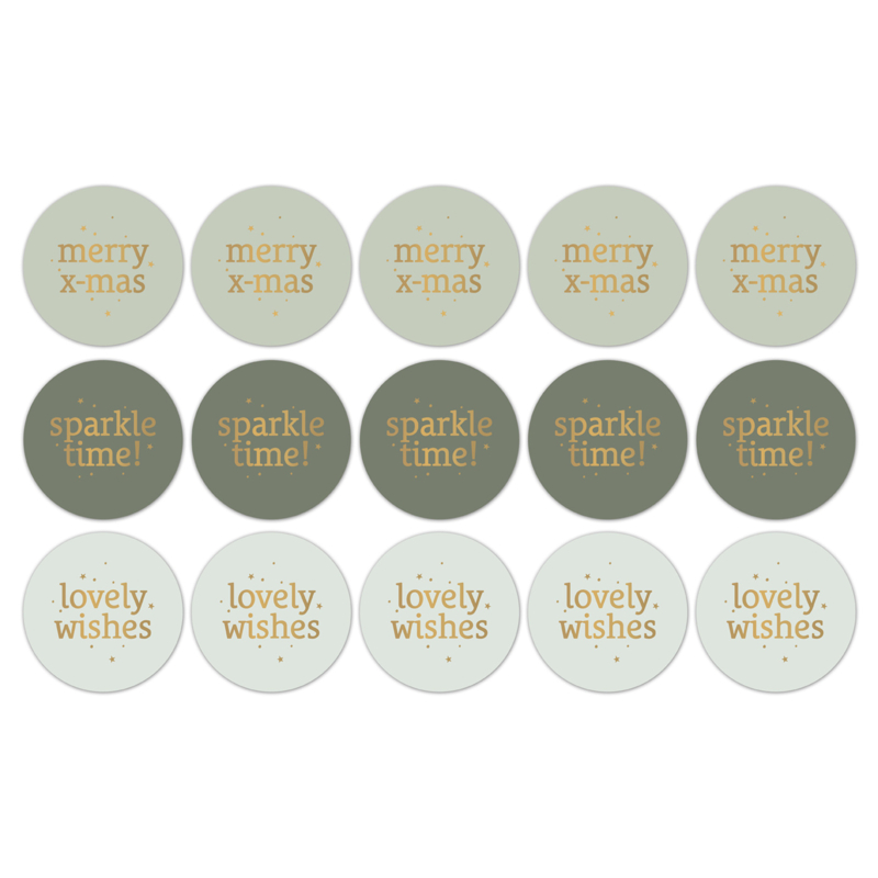 6 kadostickers Xmas mix tekst groen/goudDeze prachtige ronde kadostickers in drie kleuren groen/goud zijn te gek als kadosticker en als sluitsticker op je kerst kadootjes.